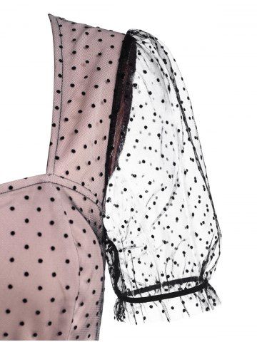 Mesh Insert Polka Dot Puff Sleeve Corset Style Dress - Black - L