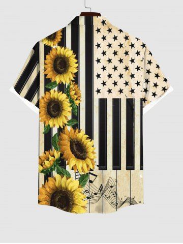American Flag Piano Sunflower Print Plus Size Matching Set For Couples - Multi-a