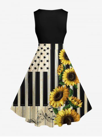 4th Of July Outfits > American Flag Piano Sunflower Print Plus Size Matching Set For Couples