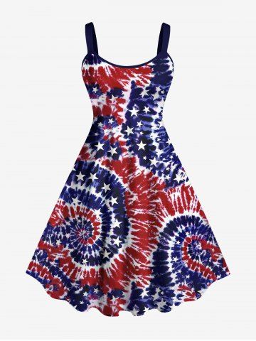 4th Of July Outfits > American Flag Spiral Tie Dye Print Plus Size Matching Hawaii Beach Outfit For Couples