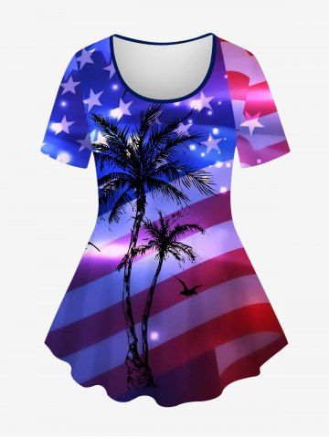 Glitter Sparkling American Flag Coconut Tree Print Plus Size Matching Set For Couples - Multi-a