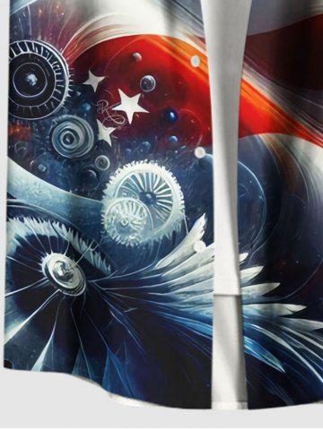 Matching Shirt and Romper Plus Size Outfit Ombre Patriotic American Flag Wing Print For Couples - Blue