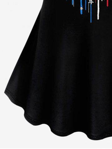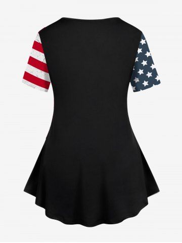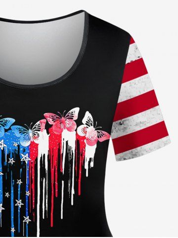 Patriotic American Flag Butterfly Stars Heart-Shape Stripe Print T-shirt and Leggings Plus Size Matching Set - Black