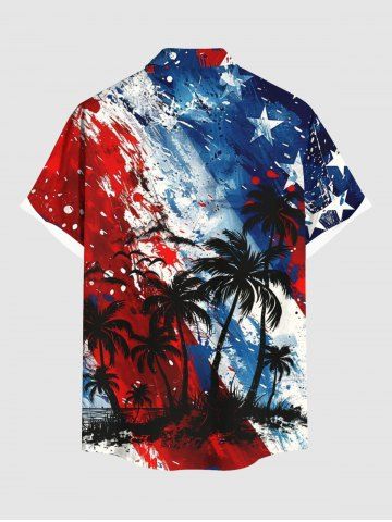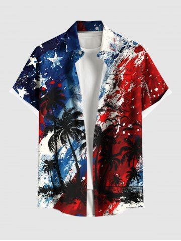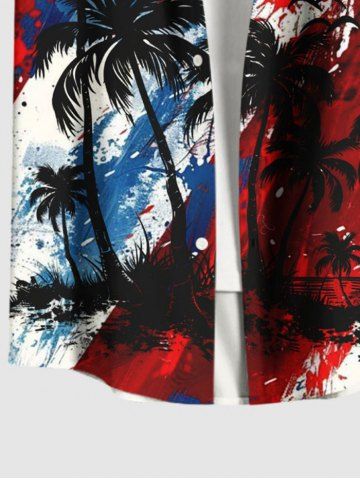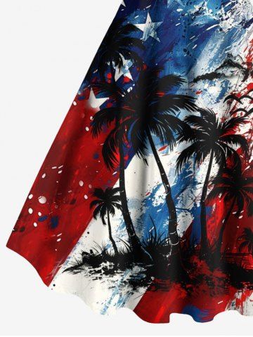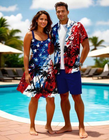 4th Of July Outfits > Patriotic American Flag Coconut Tree Paint Splatter Print Plus Size Matching Hawaii Beach Outfit For Couples