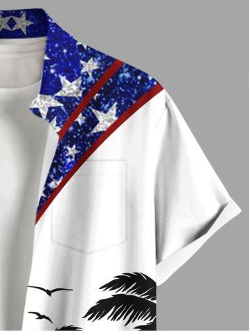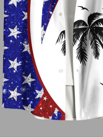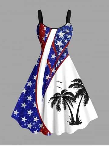 4th Of July Outfits > Patriotic American Flag Coconut Tree Print Plus Size Matching Hawaii Beach Outfit For Couples
