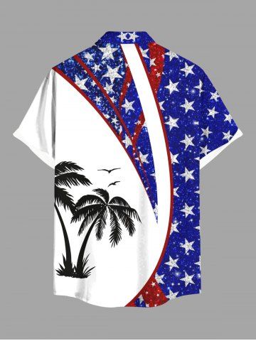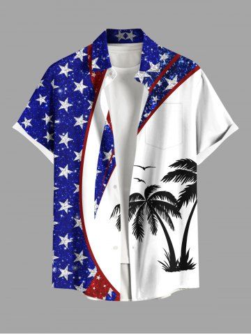 Patriotic American Flag Coconut Tree Print Plus Size Matching Hawaii Beach Outfit For Couples - Blue