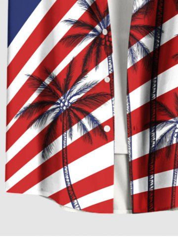 Patriotic American Flag Coconut Tree Print Plus Size Matching Outfit For Couples - Red