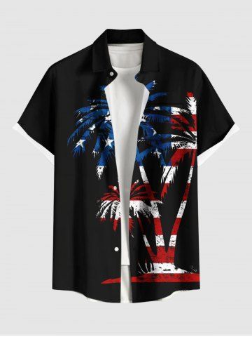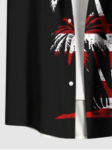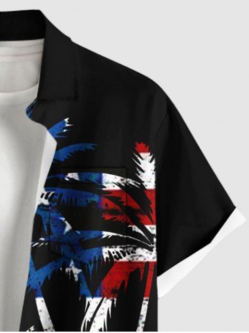 Patriotic American Flag Coconut Tree Print Plus Size Matching Outfit For Couples - Black