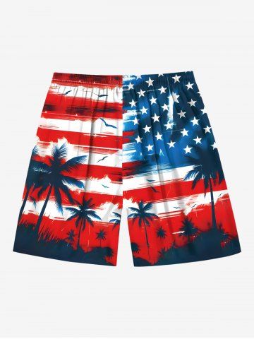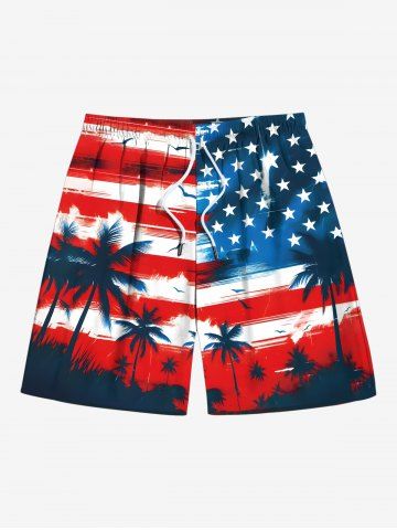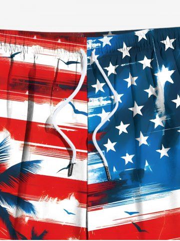Patriotic American Flag Coconut Tree Print Plus Size Matching Outfit For Couples - Red