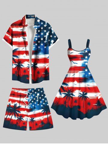 4th Of July Outfits > Patriotic American Flag Coconut Tree Print Plus Size Matching Outfit For Couples