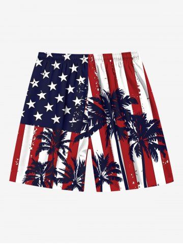 Patriotic American Flag Coconut Tree Print Plus Size Matching Outfit For Couples - Red