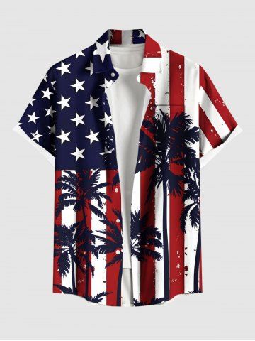 4th Of July Outfits > Patriotic American Flag Coconut Tree Print Plus Size Matching Outfit For Couples