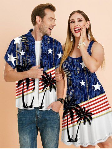 4th Of July Outfits > Patriotic American Flag Coconut Tree Star Print Plus Size Matching Outfit For Couples