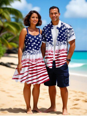 4th Of July Outfits > Patriotic American Flag Distressed Print Plus Size Matching Outfit For Couples