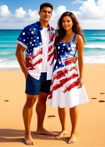 4th Of July Outfits > Patriotic American Flag Distressed Print Plus Size Matching Outfit For Couples