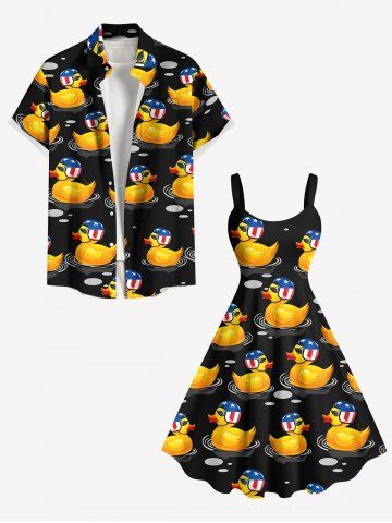 4th Of July Outfits > Patriotic American Flag Duck Print Plus Size Matching Hawaii Beach Outfit For Couples