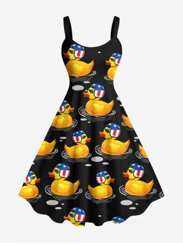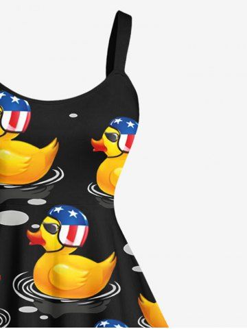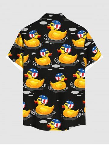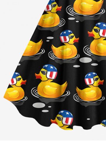Patriotic American Flag Duck Print Plus Size Matching Hawaii Beach Outfit For Couples - Black