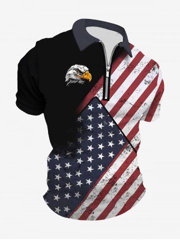 Patriotic American Flag Eagle Print Plus Size Matching Outfit For Couples - Black