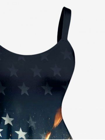 Patriotic American Flag Eagle Print Plus Size Matching Outfit For Couples - Deep Blue