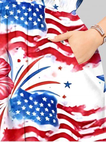 Patriotic American Flag Fireworks Hibiscus Flowers Print Plus Size Matching Outfit For Couples - Red