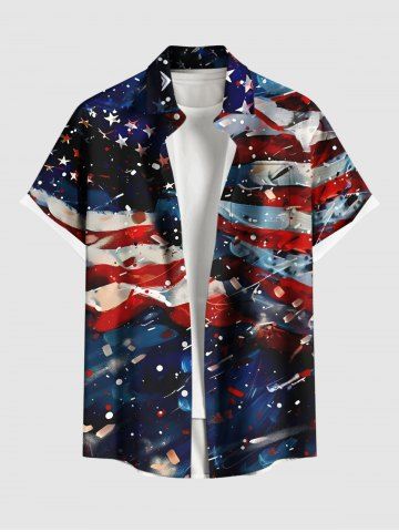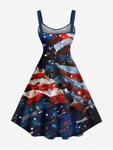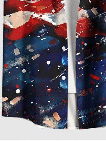 Patriotic American Flag Galaxy Print Plus Size Matching Outfit For Couples - Blue