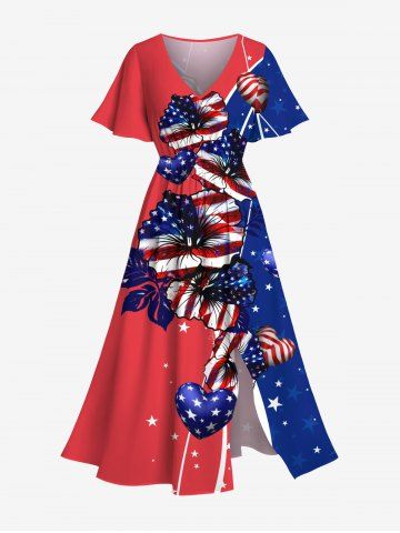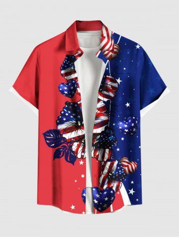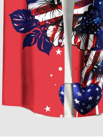 Patriotic American Flag Hibiscus Flowers Heart Print Plus Size Matching Hawaii Beach Outfit For Couples - Red