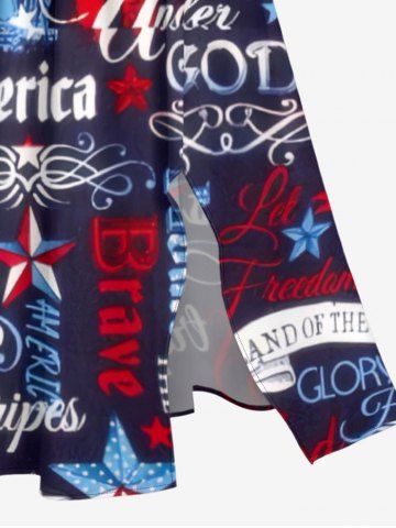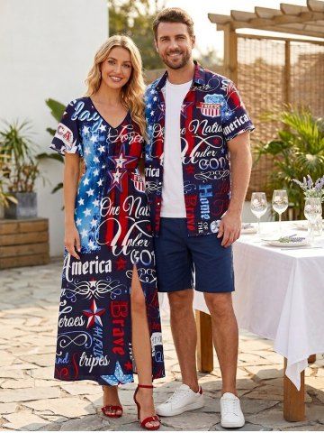 Patriotic American Flag Letter Print Plus Size Matching Outfit For Couples - Blue