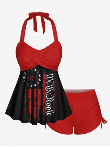 Patriotic American Flag Letters Print Plus Size Matching Outfit For Couples - Red