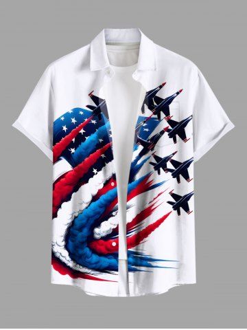 Patriotic American Flag Plane Print Plus Size Matching Outfit For Couples - Crystal Cream