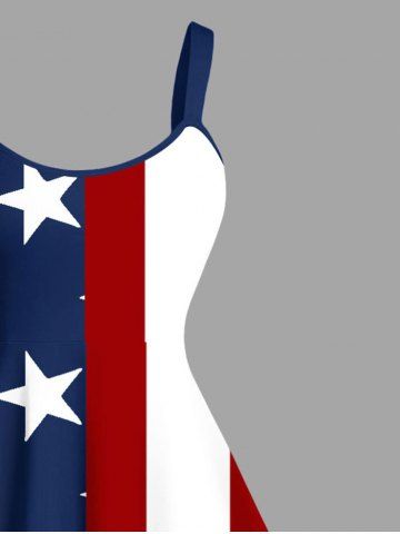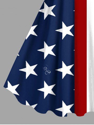 Patriotic American Flag Print Plus Size Matching Outfit For Couples - Midnight Blue