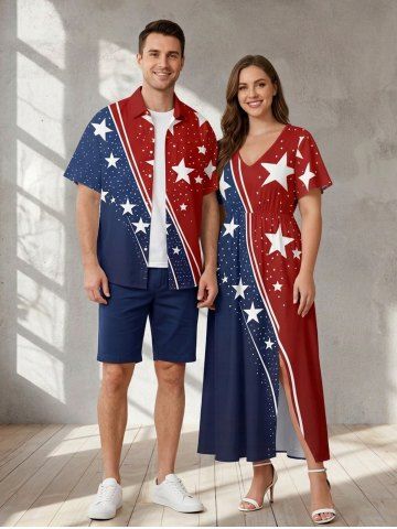 4th Of July Outfits > Patriotic American Flag Print Plus Size Matching Outfit For Couples