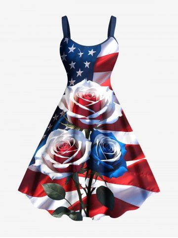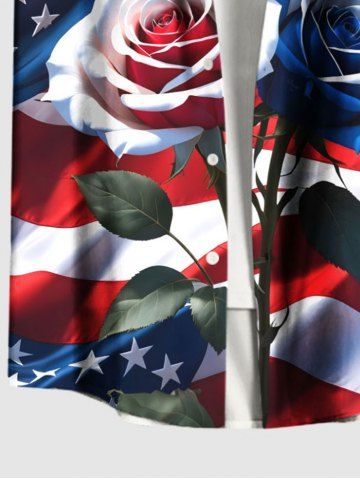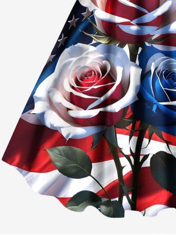 Patriotic American Flag Rose Flower Print Plus Size Matching Hawaii Beach Outfit For Couples - Red