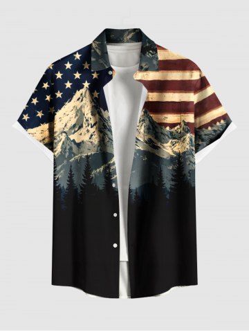 Patriotic American Flag Snow Mountain Print Plus Size Matching Outfit For Couples - Black