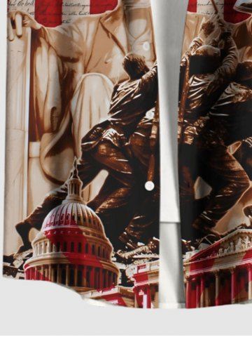 Patriotic American Flag Stone Statue Print Plus Size Matching Outfit For Couples - Red
