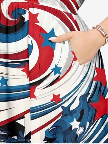 4th Of July Outfits > Patriotic American Flag Swirl Print Plus Size Matching Outfit For Couples
