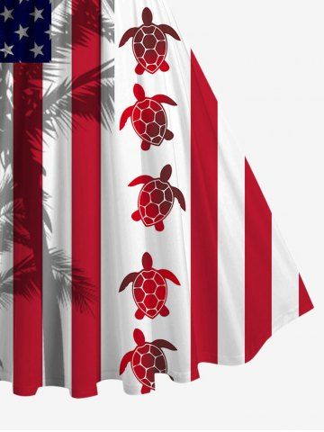 Patriotic American Flag Turtle Coconut Tree Print Plus Size Matching Hawaii Beach Outfit For Couples - Multi-a