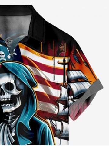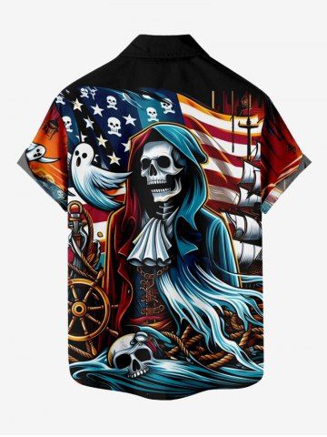Skull Anchor Rudder Ghost Patriotic American Flag Cruise Print Plus Size Matching Outfit For Couples - Black