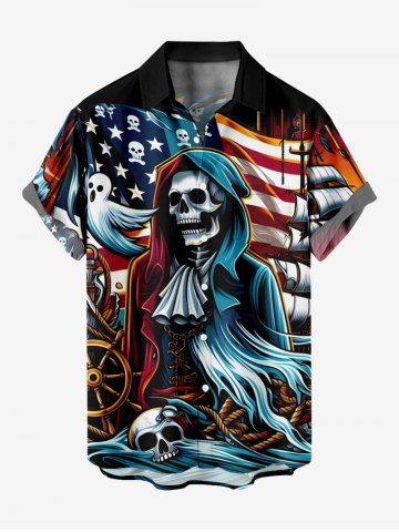 4th Of July Outfits > Skull Anchor Rudder Ghost Patriotic American Flag Cruise Print Plus Size Matching Outfit For Couples