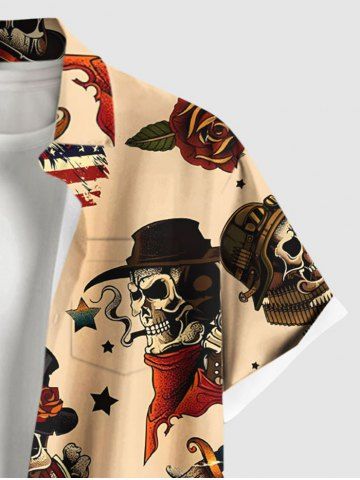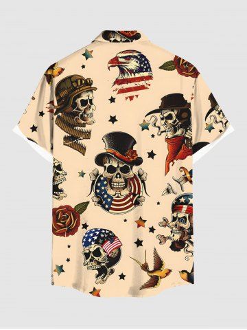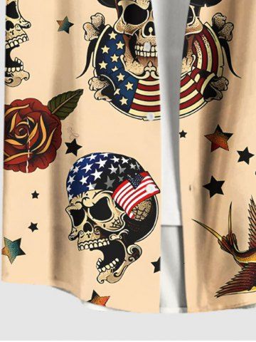 Skull Pirate Patriotic American Flag Rose Flower Print Plus Size Matching Hawaii Beach Outfit For Couples - Light Coffee