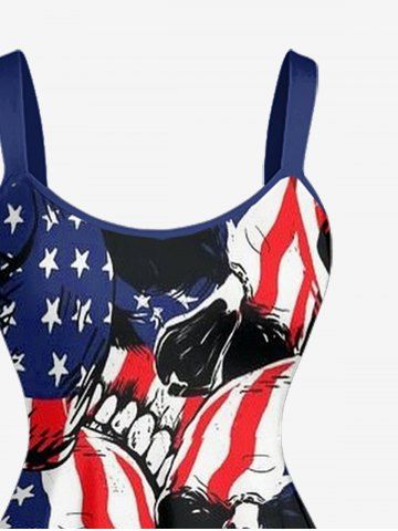 Skulls Patriotic American Flag Print Plus Size Matching Outfit For Couples - Deep Blue