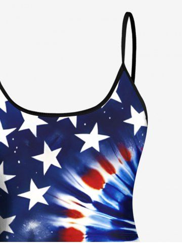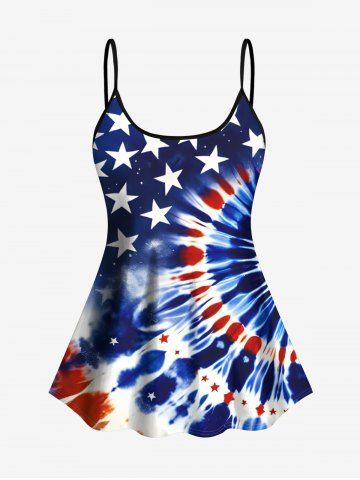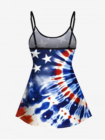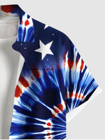 Spiral Tie Dye Patriotic American Flag Print Shirt Swimsuit Plus Size Matching Hawaii Beach Outfit For Couples - Blue