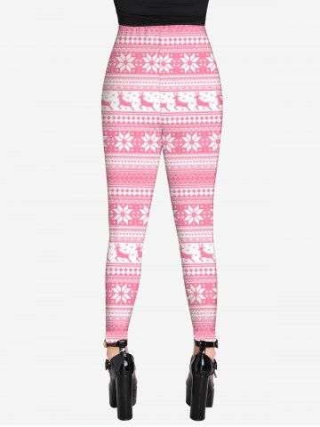 Gothic Christmas Elk Snowflake Striped Print Skinny Leggings - Light Pink - L