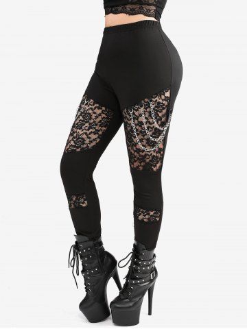 Gothic Floral Lace Panel Chain Tassel Patchwork Skinny Pants - Black - L | Us 12