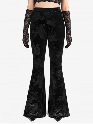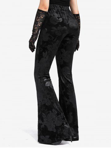 Alternative & Gothic Bottoms > Gothic Flower Print Pockets Flare Pants