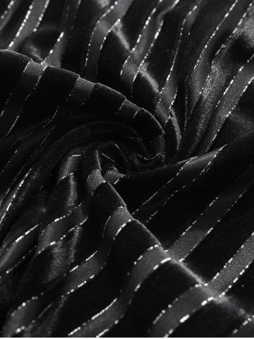 Gothic Glitter Silver Line Velvet Striped Patchwork Flare Pants - Black - Xxxl