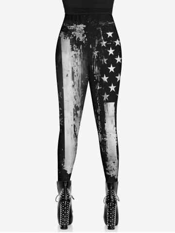 Gothic Ink Painting Striped Star Patriotic American Flag Print Skinny Leggings - Black - 2x