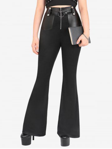 Gothic PU Panel O-Ring Buckle Zipper Pockets Pull On Flare Pants - Black - L | Us 12
