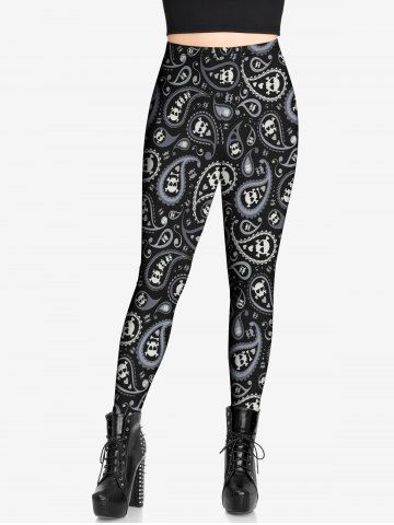 Gothic Skulls Heart Paisley Print Skinny Leggings - Black - 2x