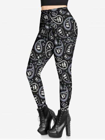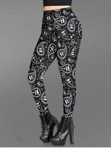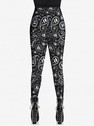 Gothic Skulls Heart Paisley Print Skinny Leggings - Black - 4x