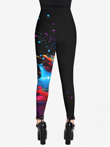 Gothic Varnish Painting Splatter Print Skinny Pull On Leggings - Black - 1x